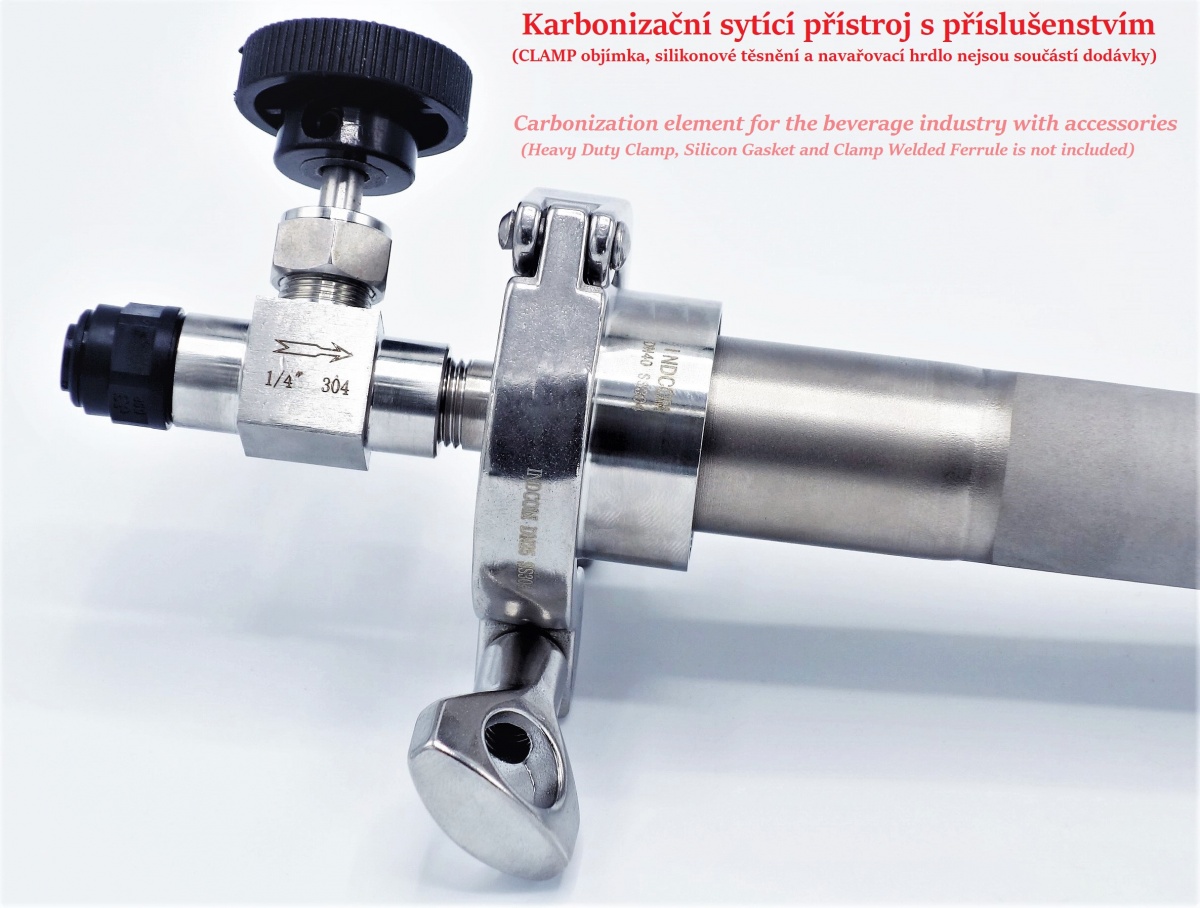 Karbonizační přístroj se používá pro sycení hotového nápoje (piva, limonády, cideru) uvnitř tanku sterilním vzduchem, CO2 nebo dusíkem. Díky konstrukci tohoto karbonizačního elementu je možné dosáhnout vytvoření velmi jemné bubliny a docílit tak při dané teplotě nápoje a tlaku potřebného nasycení nápoje. Provzdušňovací element je možné rovněž použít i pro nasycení zchlazené mladiny před jejím zakvašením na spilce či v cylindrokónickém kvasném tanku.