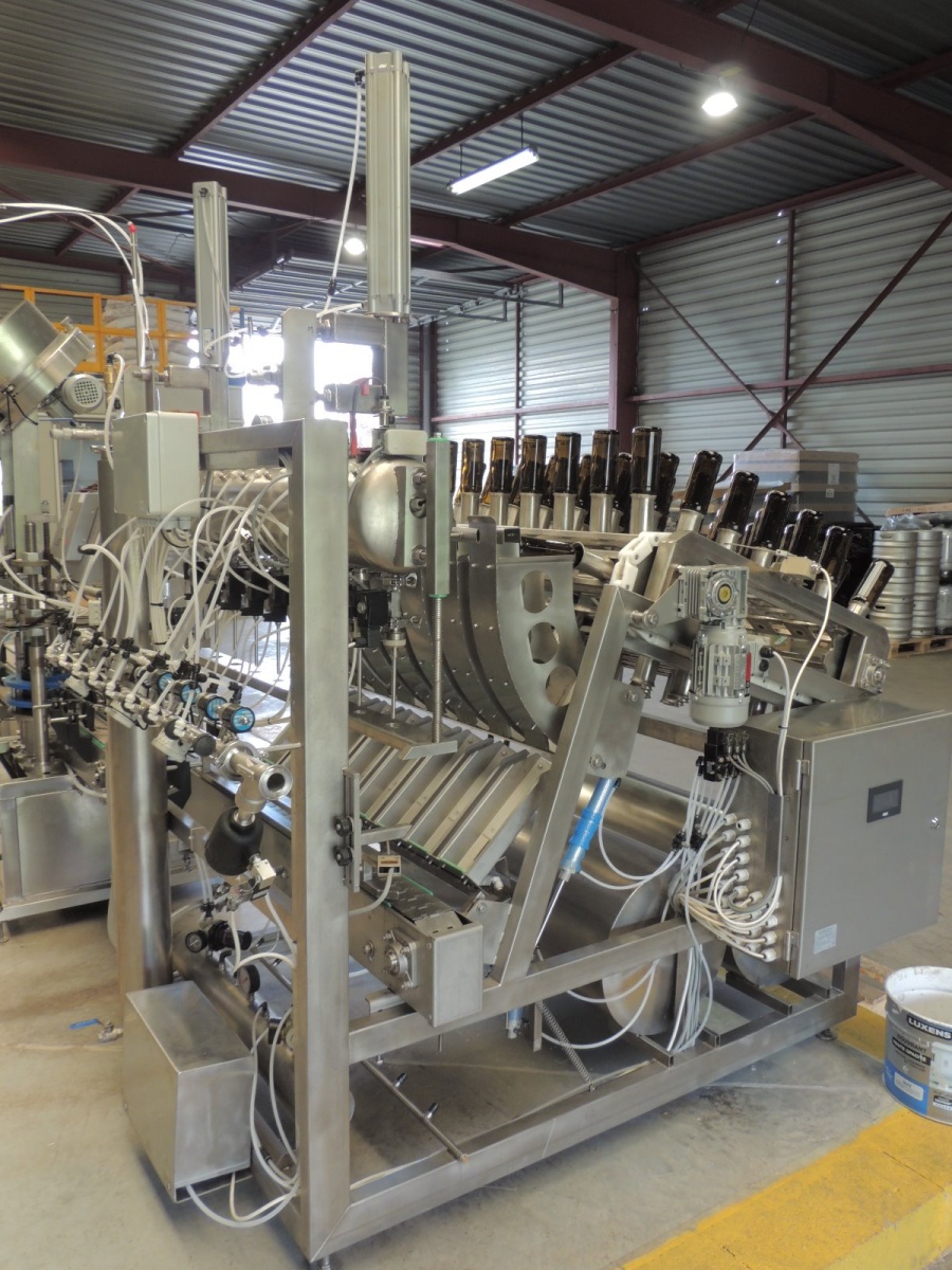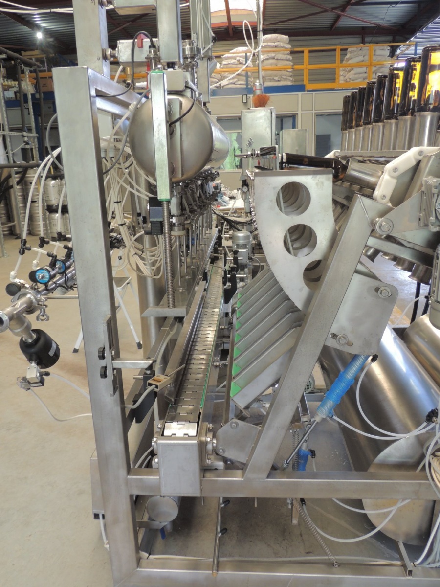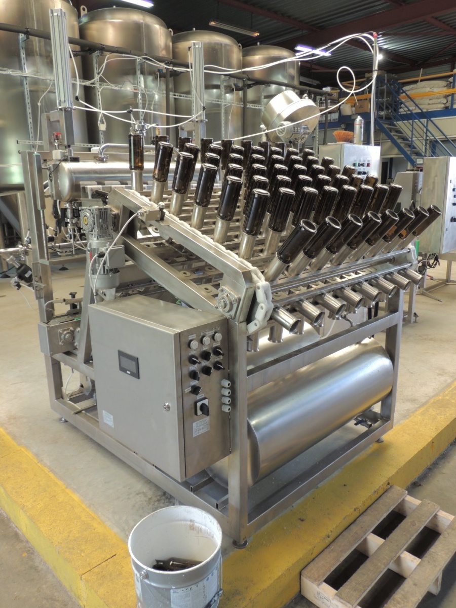 - linka má 16 mycích trysek (8 pro mytí láhve vodou a 8 pro sanitaci láhve sanitačním roztokem), 8 plnících hlav s plnícími jehlami