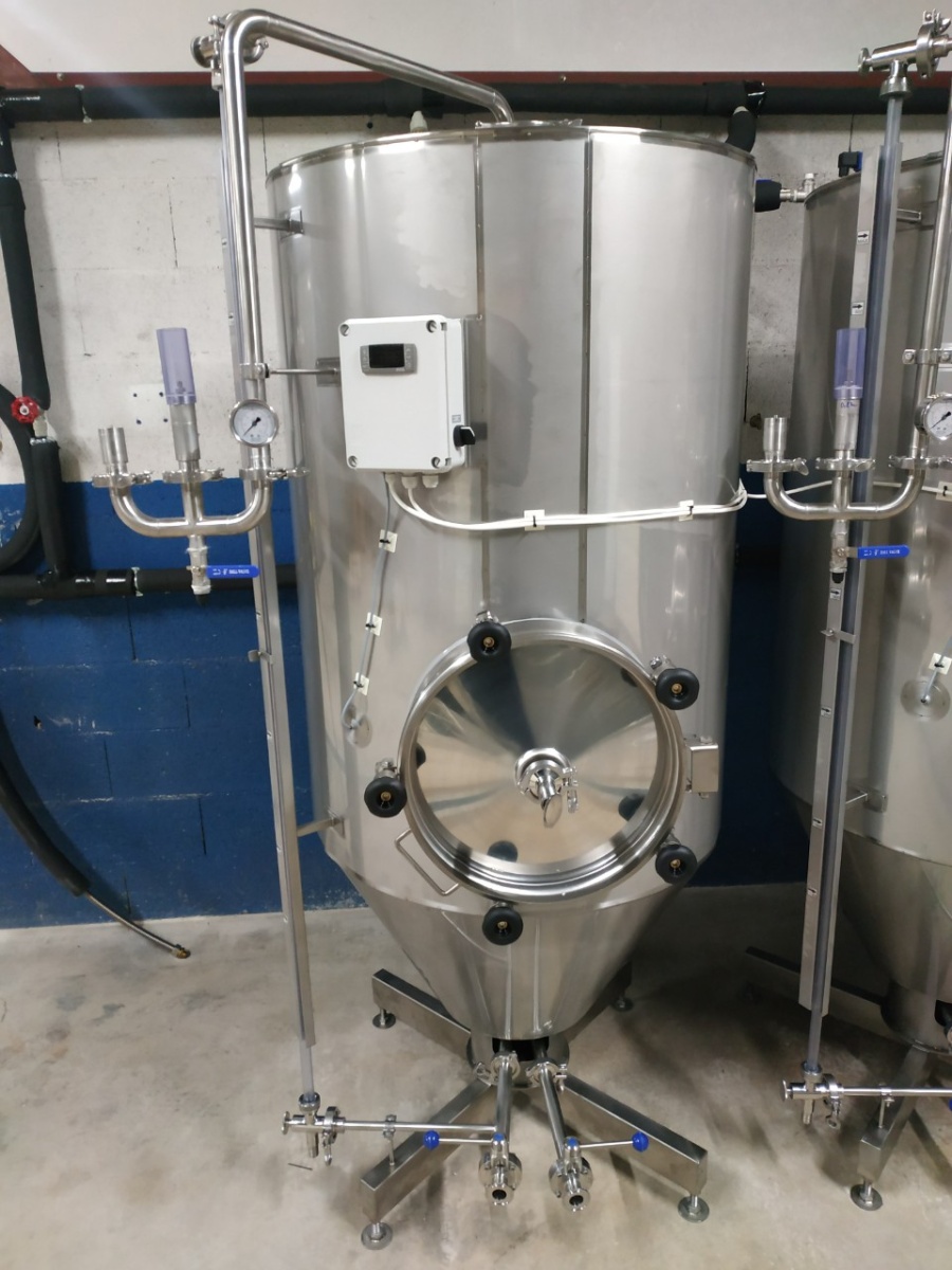 - DN 100 clamp průlez v horní části tanku pro studené chmelení