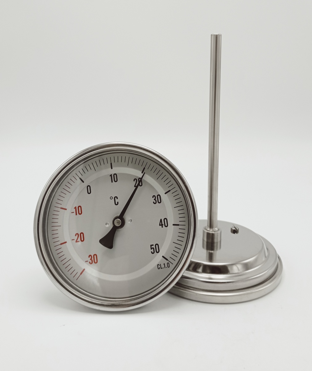 Celonerezový bimetalový teploměr s ponorným dříkem do jímky 150 mm