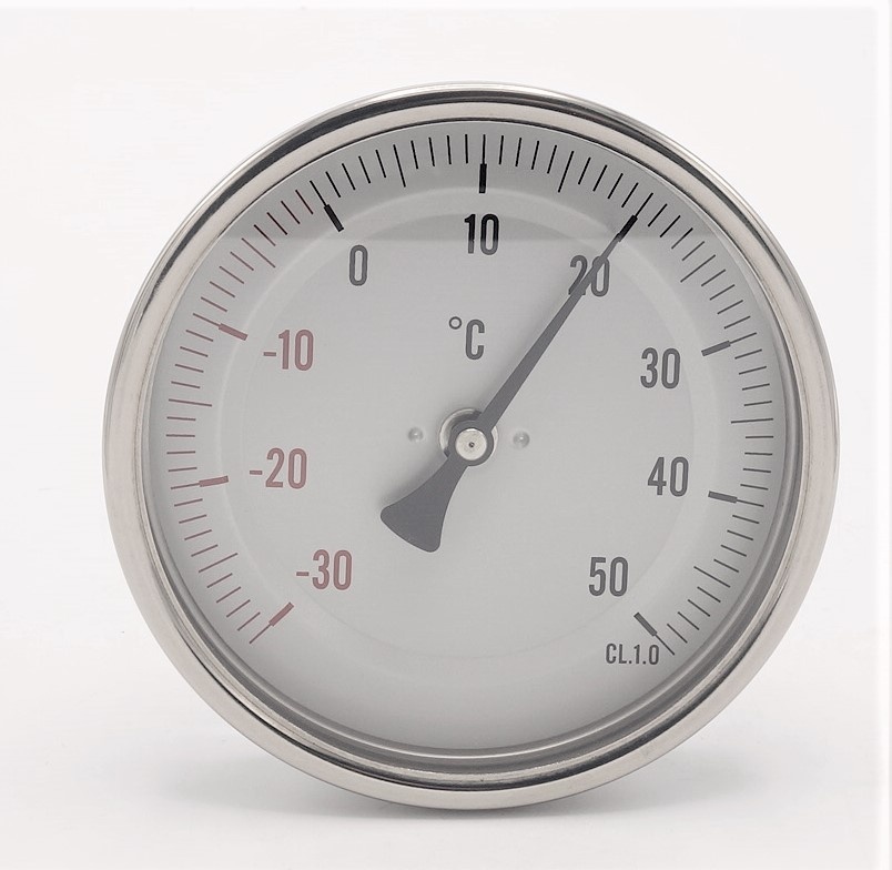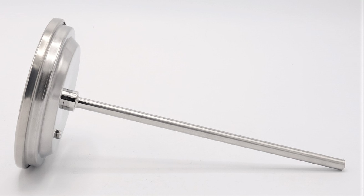 - Teploměr je vyroben z nerezové oceli 1.4301 (AISI 304), opatřen hermetickým těsněním, které zabraňuje průniku vlhkosti do pouzdra teploměru.