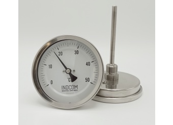 Celonerezový bimetalový teploměr s ponorným dříkem, závitový