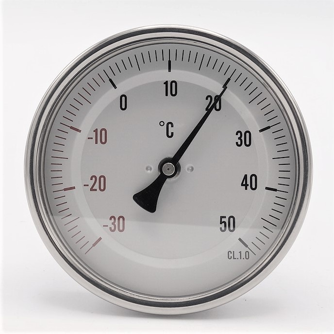 - Teploměr je vyroben z nerezové oceli 1.4301 (AISI 304), opatřen hermetickým těsněním, které zabraňuje průniku vlhkosti do pouzdra teploměru.