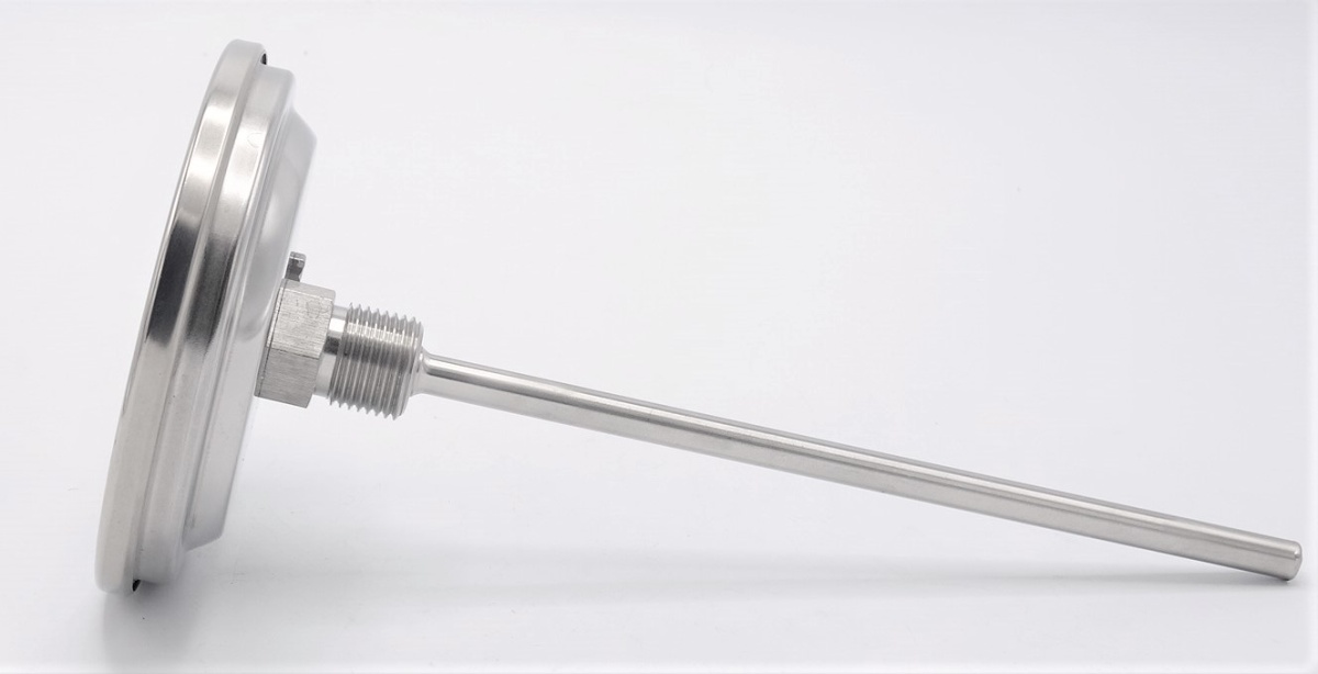 Celonerezový bimetalový teploměr s ponorným dříkem, závitový