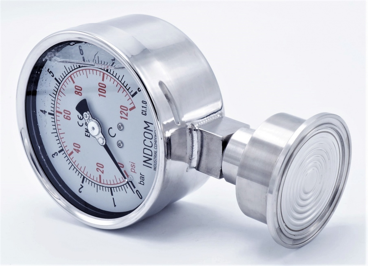 Celonerezový tlakoměr s oddělovací membránou CLAMP DIN 32676, číselník 100 mm