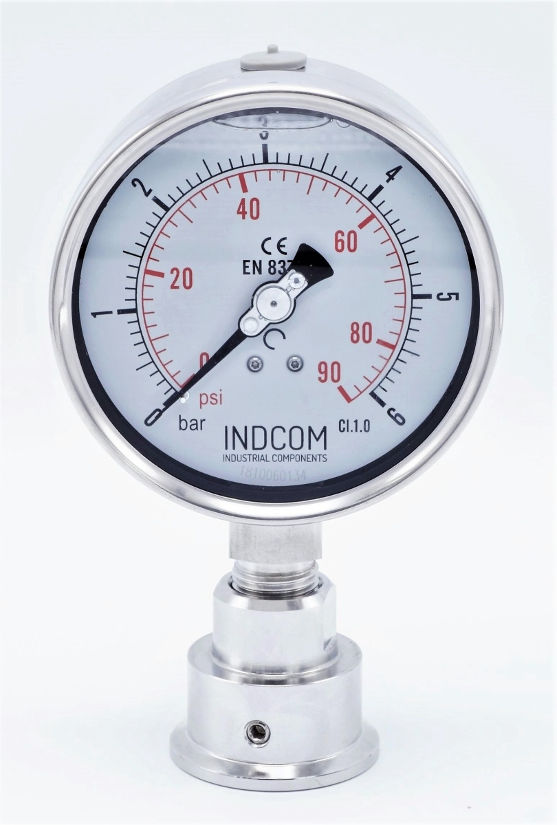 - tlakoměr je vyroben z nerezové oceli - materiál pouzdra AISI 304, materiál závitu AISI 316