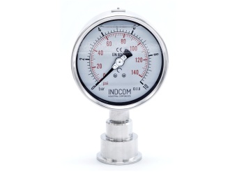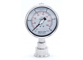 Celonerezový tlakoměr, číselník 100 mm, s oddělovací membránou CLAMP DIN32676 - límeček 50.5 mm