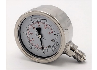 • Celonerezový výrobek: materiál pouzdra AISI 304, materiál závitu AISI 316. Snímacím zařízení je Bourdonova nerezová pružina.