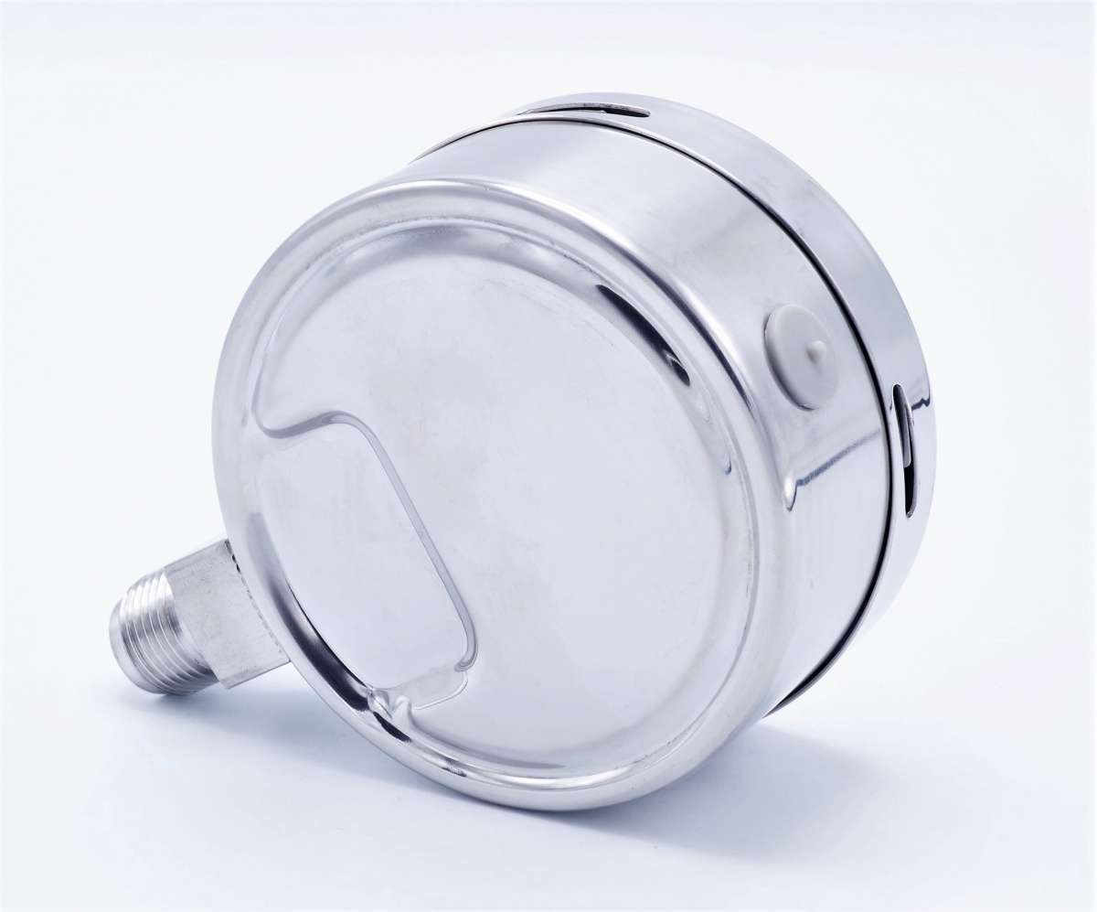 • Tlakoměr je vyroben z nerezové oceli materiál pouzdra AISI 304, materiál závitu AISI 316. Snímacím zařízení je Bourdonova nerezová pružina.