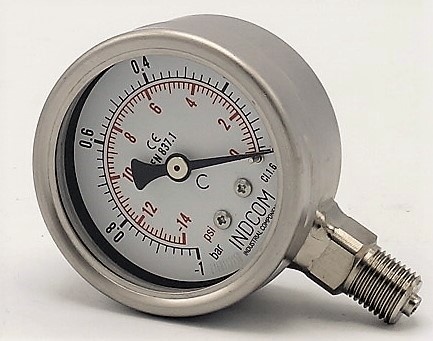 • Tlakoměr je vyroben z nerezové oceli materiál pouzdra AISI 304, materiál závitu AISI 316. Snímacím zařízení je Bourdonova nerezová pružina.