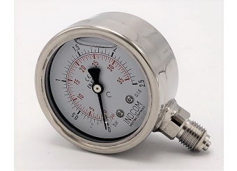 - Tlakoměr je vyroben z nerezové oceli materiál pouzdra AISI 304, materiál závitu AISI 316. Snímacím zařízení je Bourdonova nerezová pružina.