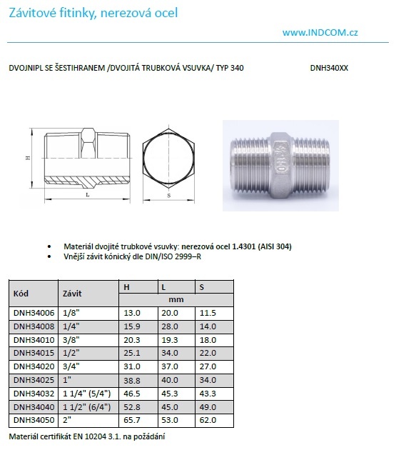 Dvojnipl se šestihranem /dvojitá trubková vsuvka/ typ 340