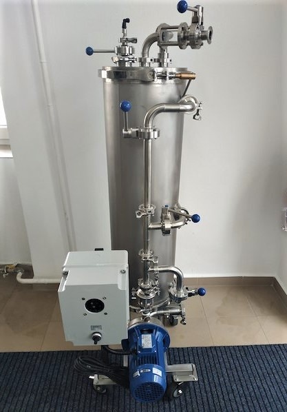 Odpověď: Celé zařízení HM je konstruováno jako kompletně rozebíratelné, tj. nechá se v případ potřeby kompletně rozebrat a vyčistit. Po ukončení procesu studeného chmelení a odtlakování nádoby je vypuštěno do kanálu zbytkové pivo, které již nebylo možné vytlačit zpět do tanku, následně je vytažen vnitřní filtry (který je možné vymýt tlakovou vodou) a následně i celé tělo HM. Po důkladném před-mytí je následně celý HM sestaven a napojen na externí CIP jednotku a je provedena standardní sanitaci 2% louhem 65-70°C a slabou kyselinou peroctovou max. 1%.