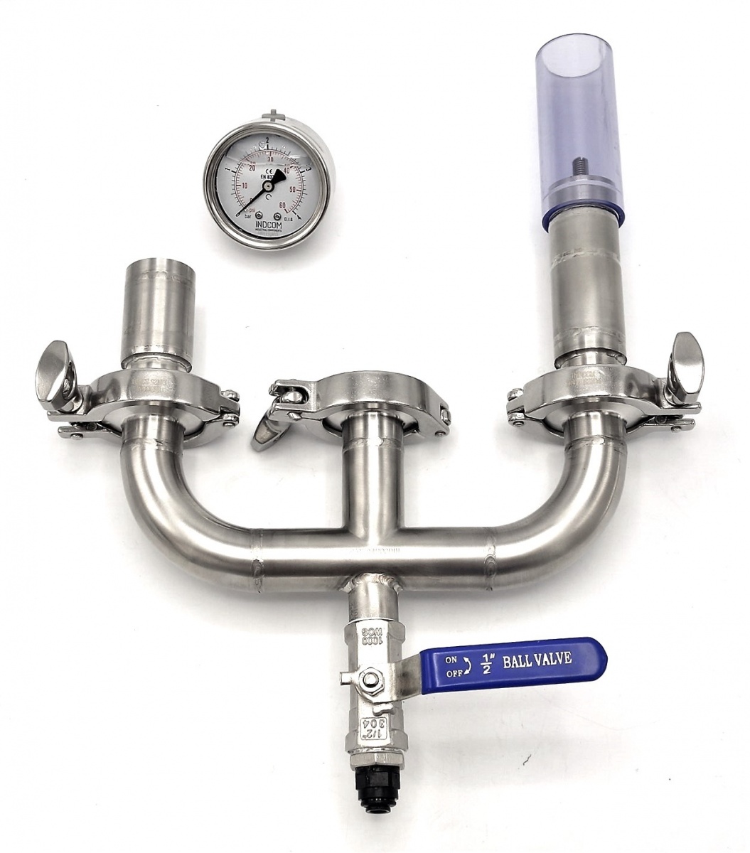 - hradící přístroj je vybaven nerezovým tlakoměrem s glycerinovou náplní, který je, v našem řešení, připojen pomocí mufny 1/4" BSP Mufna krátká /nátrubek/ typ 334| 1/4" navařené na potrubí