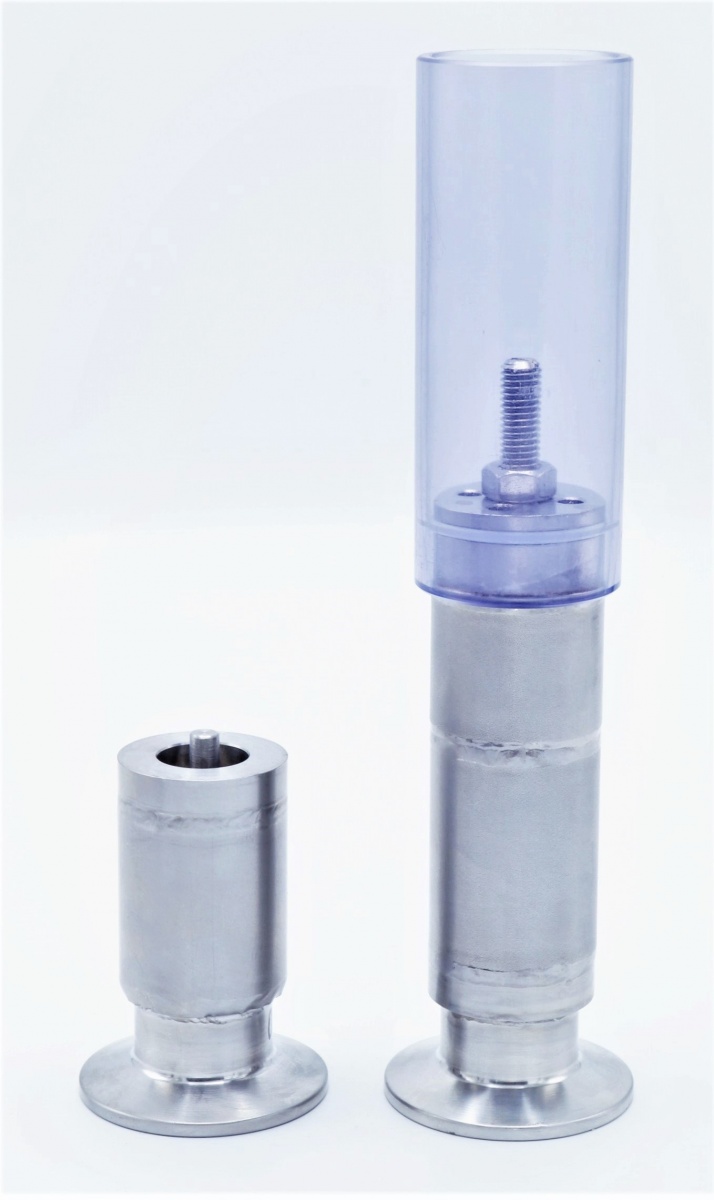 Od CK tanku se hradící ventil odpojí velmi snadno pomocí CLAMP objimky Clamp objímka I. . Hradící ventil lze kompletně odstrojit a obsluha vloží celou odstrojenou kostru do sanitačního roztoku.