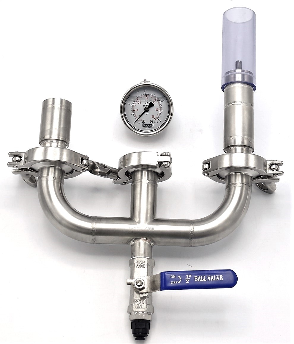 - zařízení je vybaveno nerezovým tlakoměrem s glycerinovou náplní, který je, v našem řešení, připojen pomocí mufny 1/4" BSP Mufna krátká /nátrubek/ typ 334| 1/4" navařené na potrubí