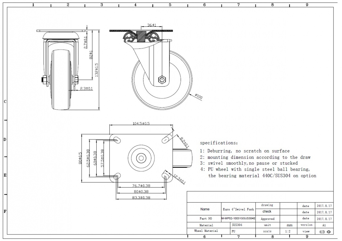 Materiál konstrukce kolečkaAISI 304-nerezová ocel