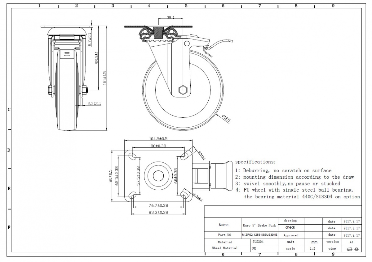 Rozměr kolečkaprůměr 125 mm, tloušťka 31 mm