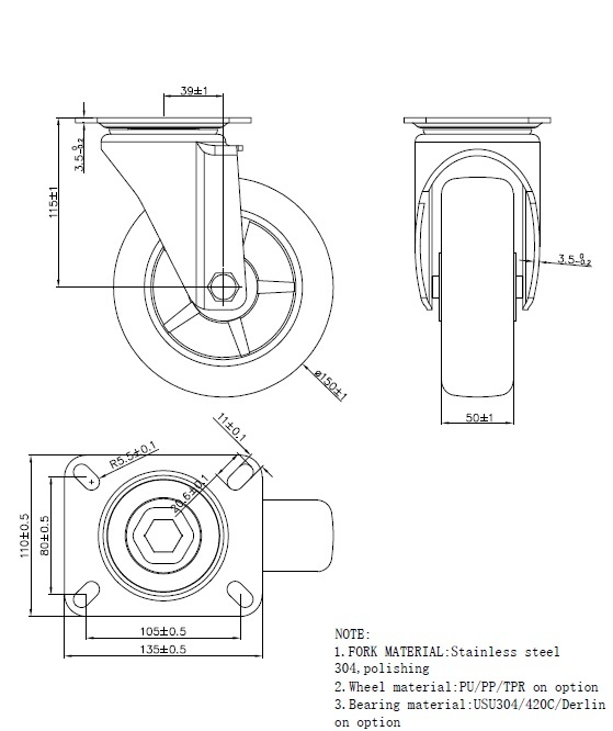 | Materiál konstrukce kolečka | AISI 304-nerezová ocel |
