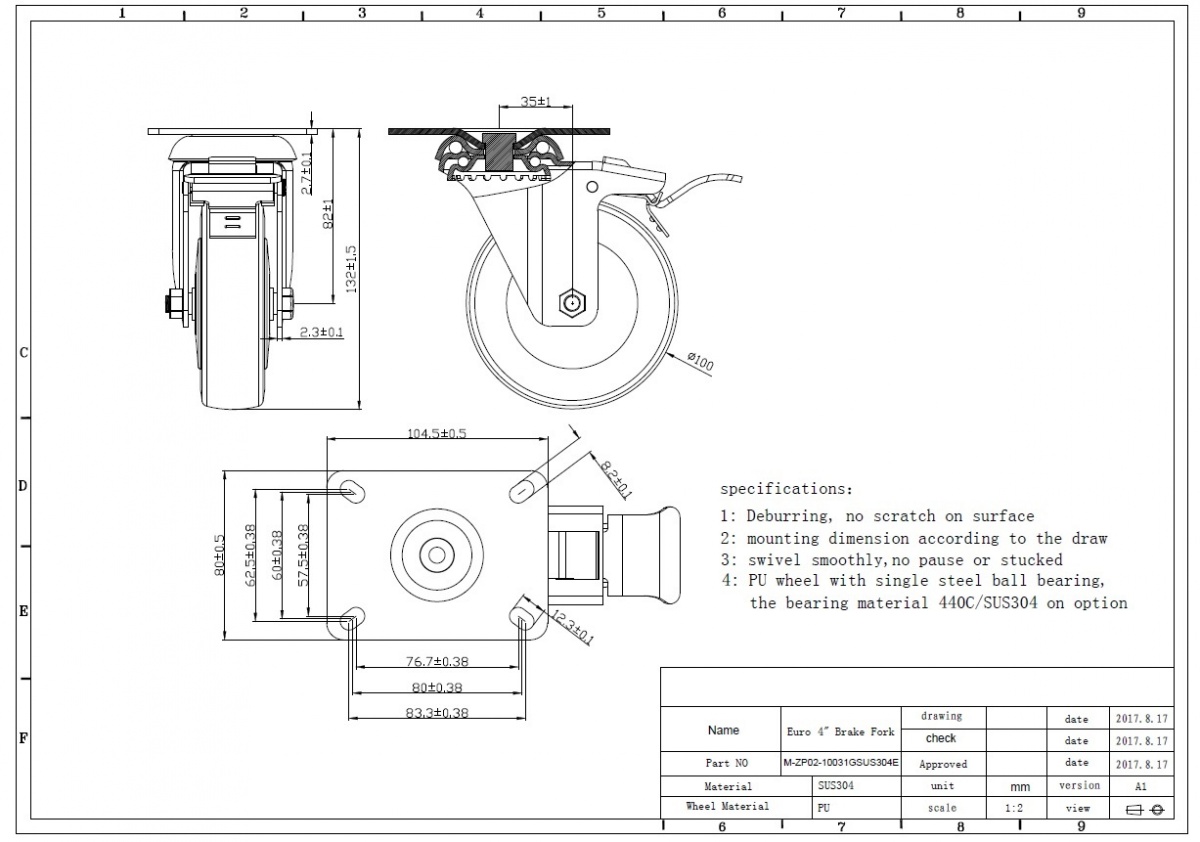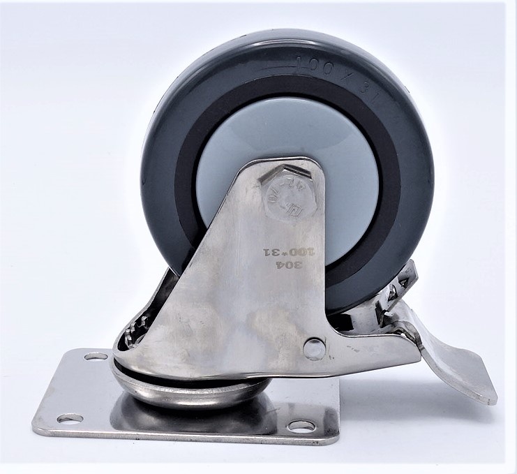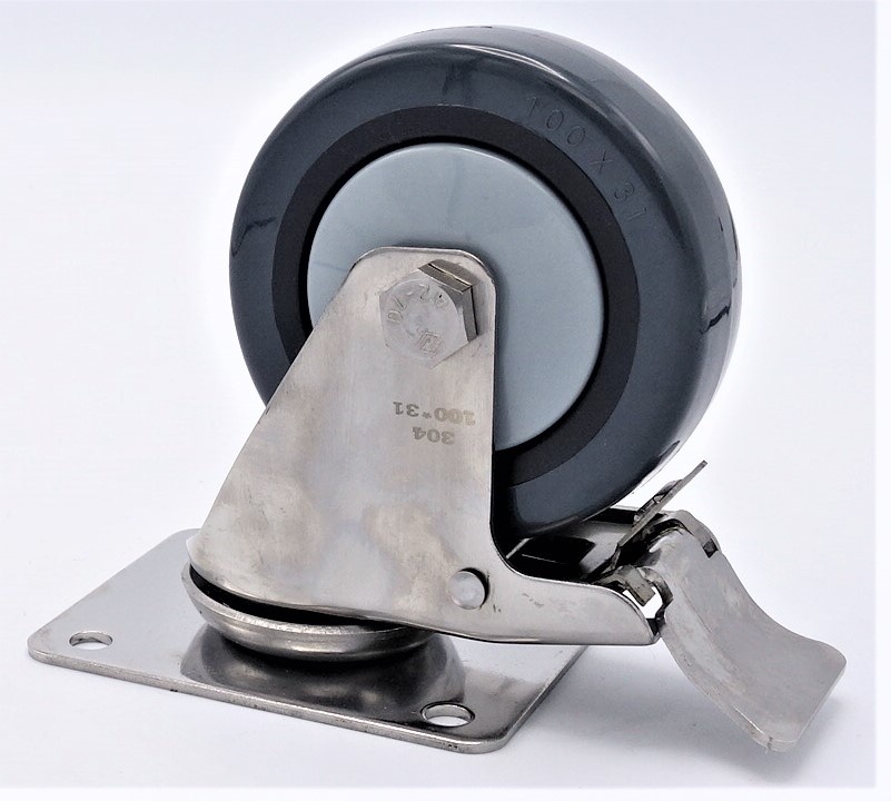 Kolečka transportní, otočná, s brzdou, nerezová, průměr 100 mm