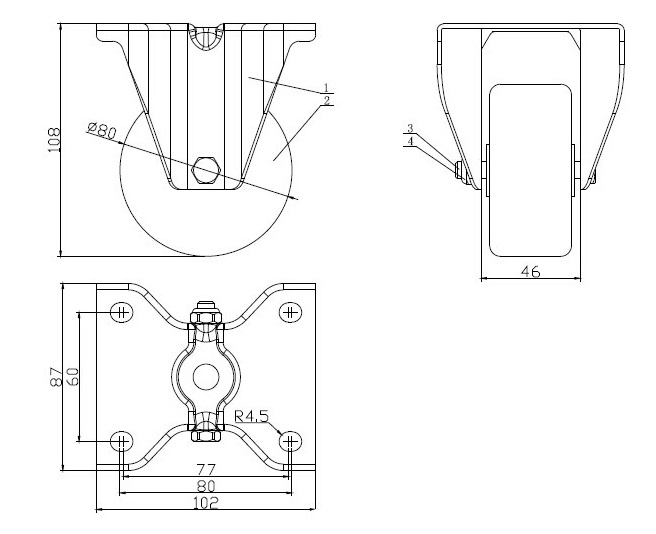 Kolečka transportní, nerezová, průměr 80 mm
