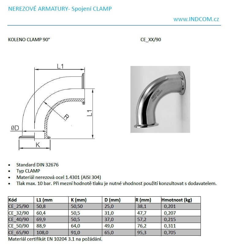 • Materiál nerezová ocel 1.4301 (AISI 304)