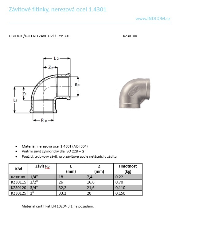 | Použití | trubkový závit, pro závitové spoje netěsnící v závitu |