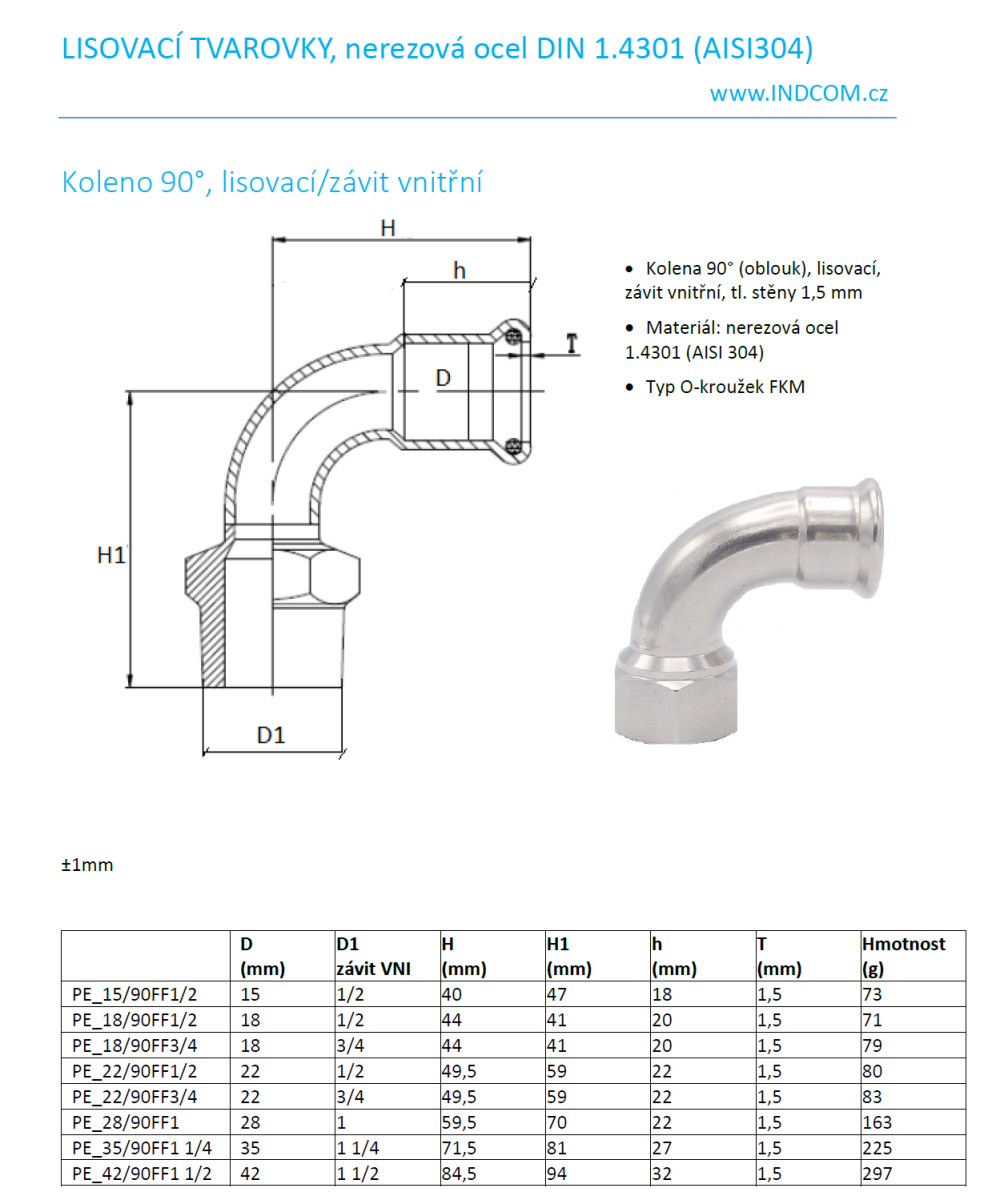 • kolena 90° (oblouk), lisovací, závit vnitřní
