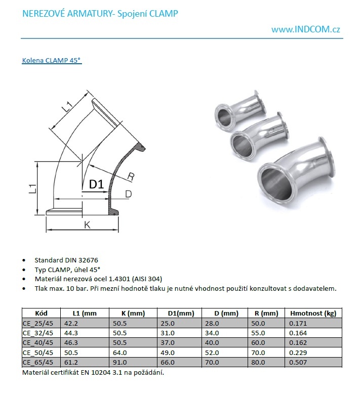 - standard pro DN10-DN100:DIN 32676, trubka DIN 11850