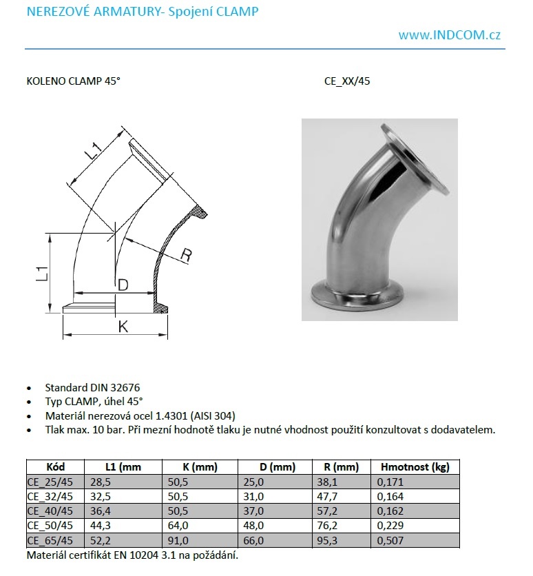 • Materiál nerezová ocel 1.4301 (AISI 304)