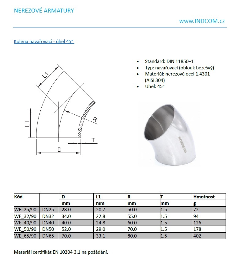 | Materiál | nerezová ocel 1.4301 (AISI 304) |