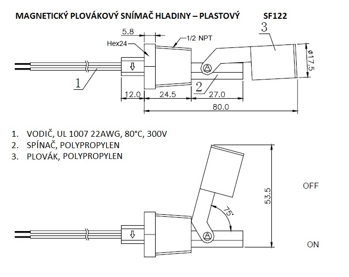 Magnetický plovákový snímač hladiny - plastový