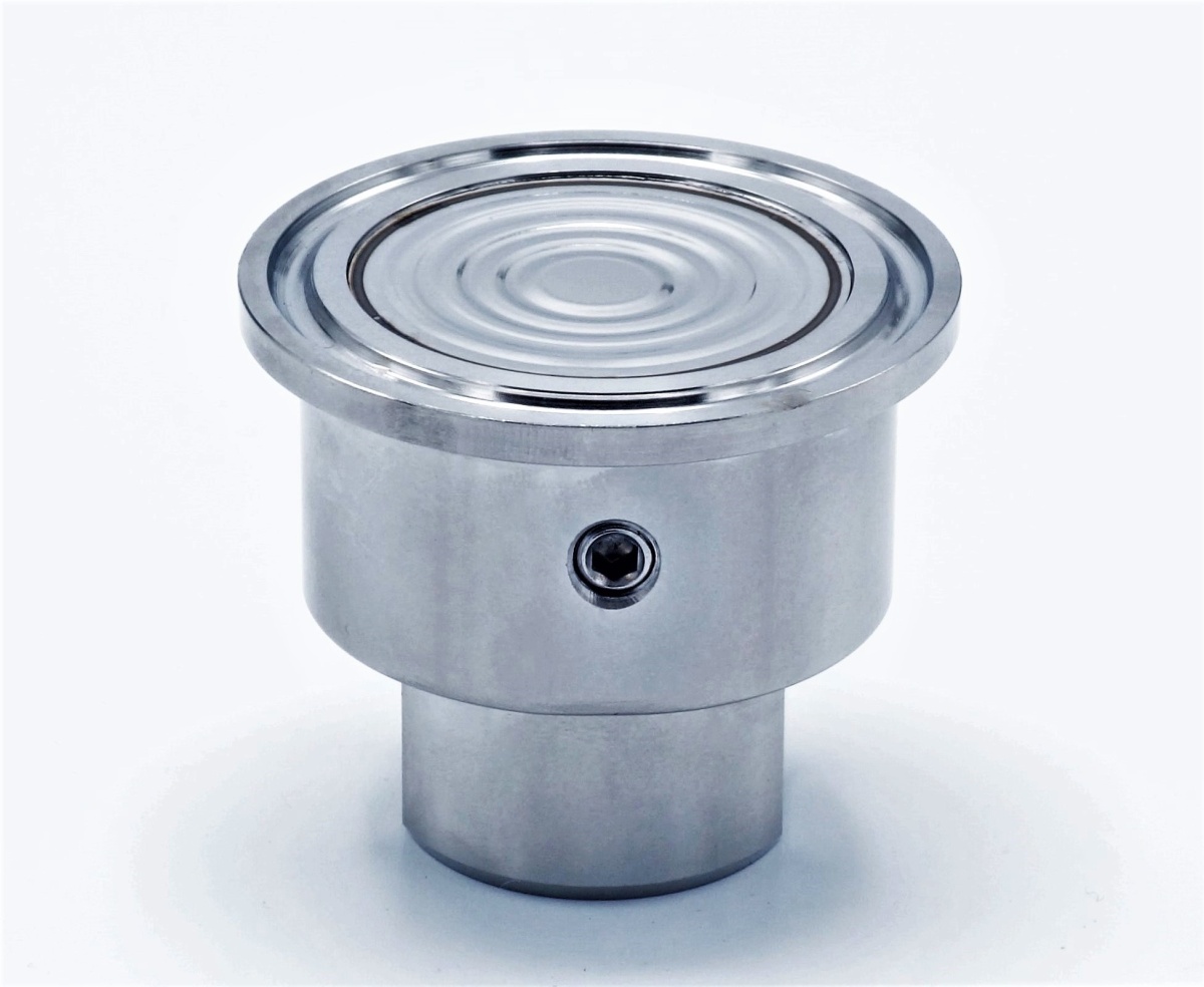Připojení pomocí CLAMP objímky (upevňovacího třmenu) a silikonového těsnění s příslušným CLAMP protikusem. Manometry musí být odvzdušněny pomocí odvzdušňovací zátky.