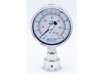 Celonerezový tlakoměr, číselník 63 mm, s oddělovací membránou-CLAMP DIN 32676, límeček 50.5 mm