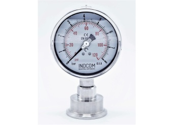 Celonerezový tlakoměr, číselník 100 mm, s oddělovací membránou CLAMP DIN32676 - límeček 50.5 mm
