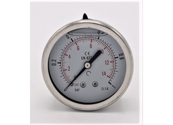 V naší nabídce naleznete široký sortiment tlakoměrů (manometrů), které svým provedením garantují trvale vysokou přesnost, spolehlivost a ochranu proti chemické korozi. Tlakoměry jsou vyrobeny z nerezové oceli, materiál pouzdra 1.4301 (AISI 304), materiál závitu 1.4401 (AISI 316). Snímací zařízení je Bourdonova nerezová trubice. Konektor je navařen metodou TIG. Tlakoměry jsou standardně dodávány s glycerínovou náplní (ochrana proti provozním rázům). Nabízíme také tlakoměry se spínacími kontakty.