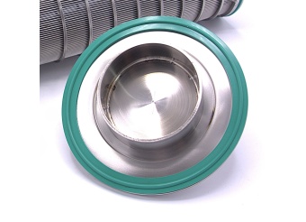 Náhradní silikonové těsnění (VMQ), filtr z perforovaného plechu a štěrbinová síta pro trubkový rohový filtr, typ připojení CLAMP DN50 a DN65.