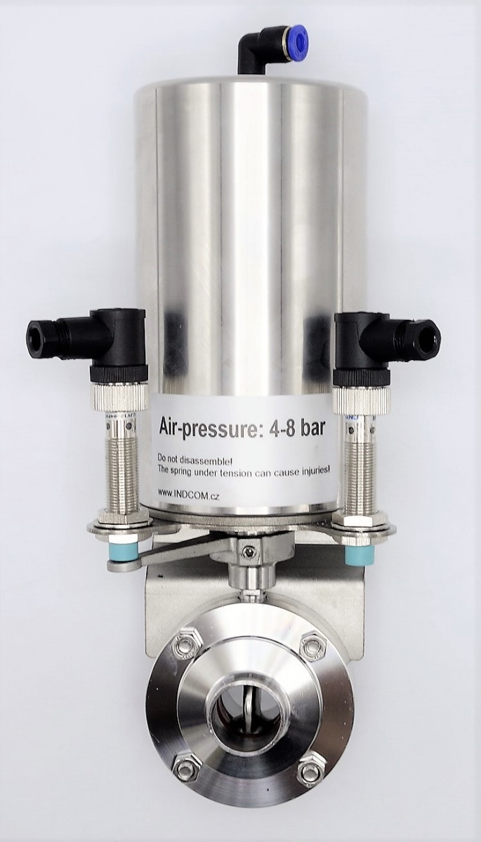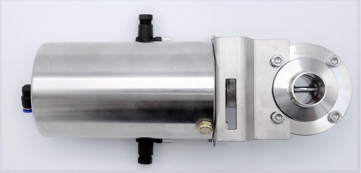 Nerezová klapka přímá, navařovací typ S-S, s pneumatickým pohonem