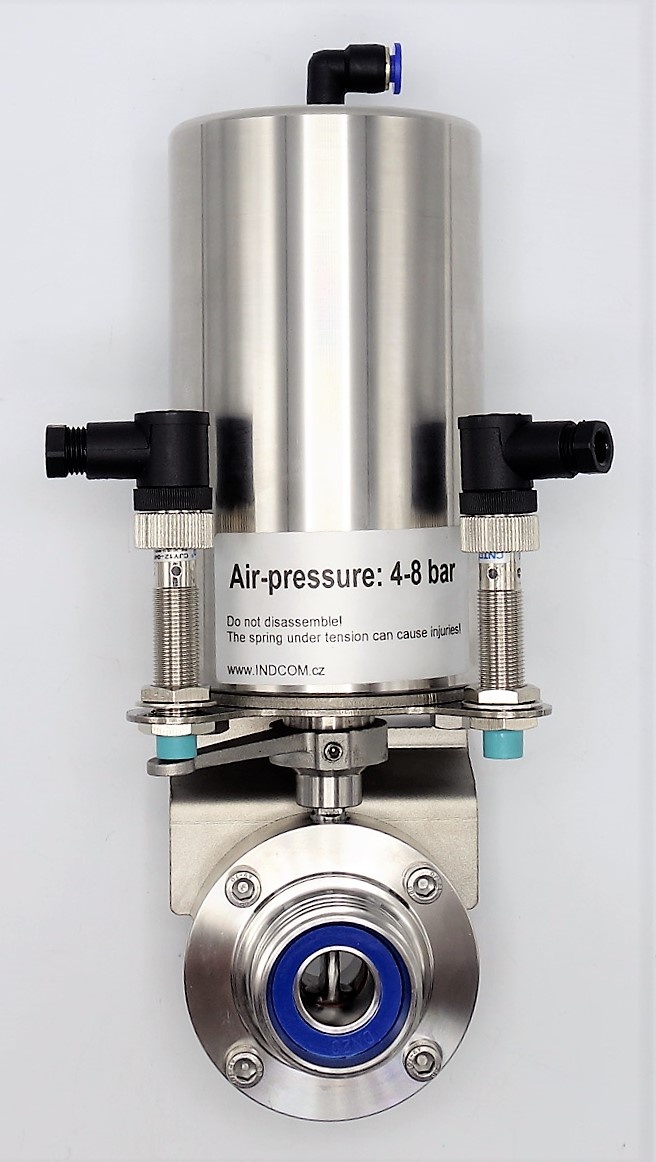Nerezová klapka přímá, závitová-navařovací typ G-S, s pneumatickým pohonem