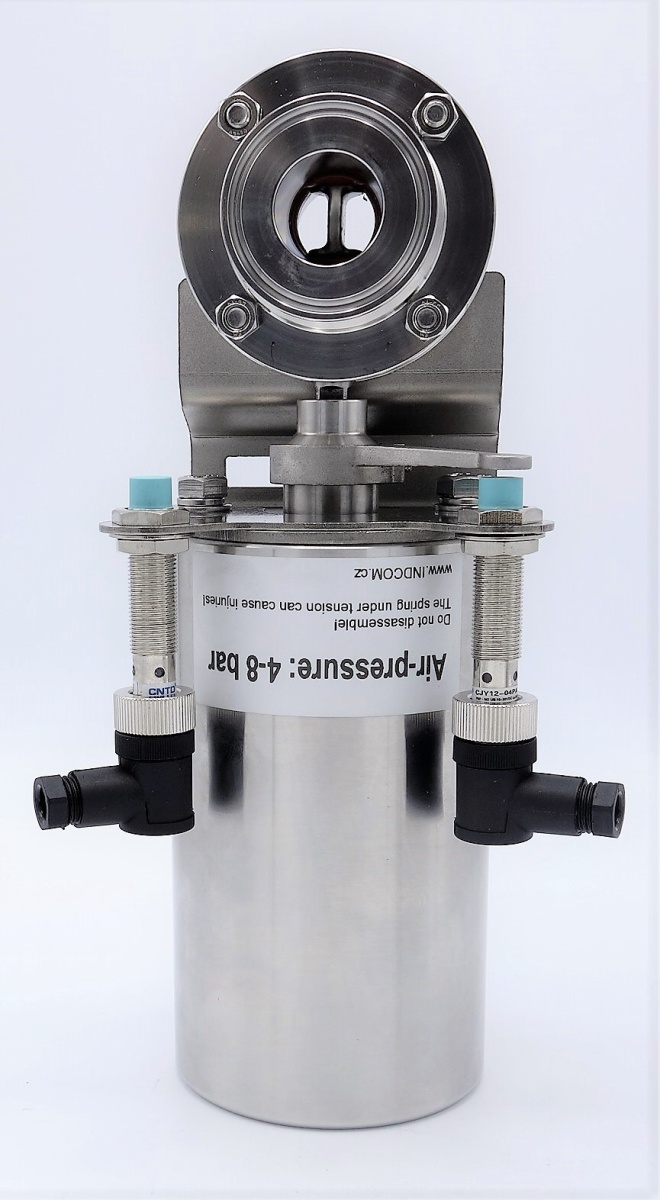 Nerezová klapka přímá, clamp typ C-C, s pneumatickým pohonem