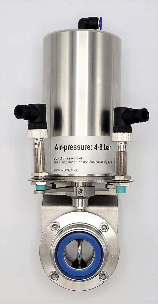 Nerezová klapka přímá, závitová-navařovací typ G-S, s pneumatickým pohonem