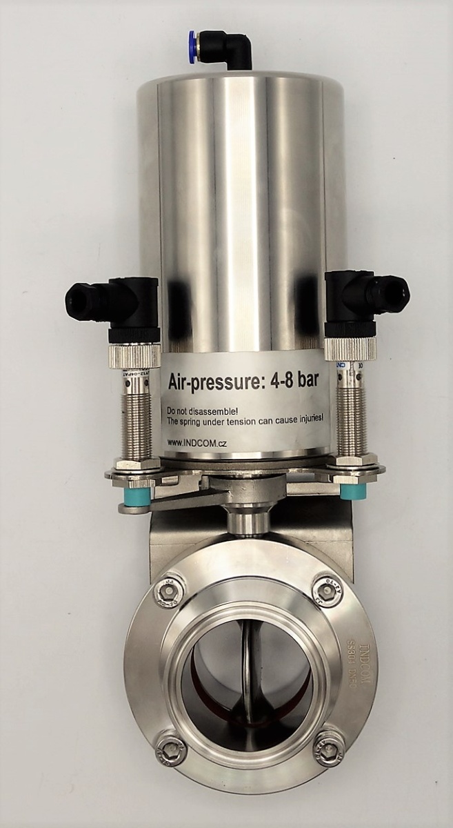 Nerezové klapky přímé, CLAMP (C-C), pneumaticky ovládané