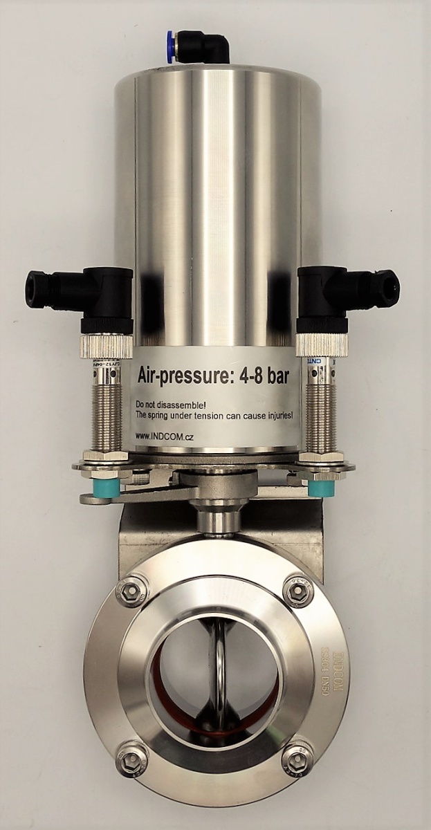 Nerezová klapka přímá, navařovací typ S-S, s pneumatickým pohonem