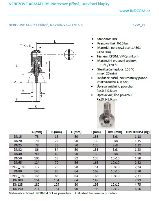 Nerezové klapky přímé, navařovací typ S-S