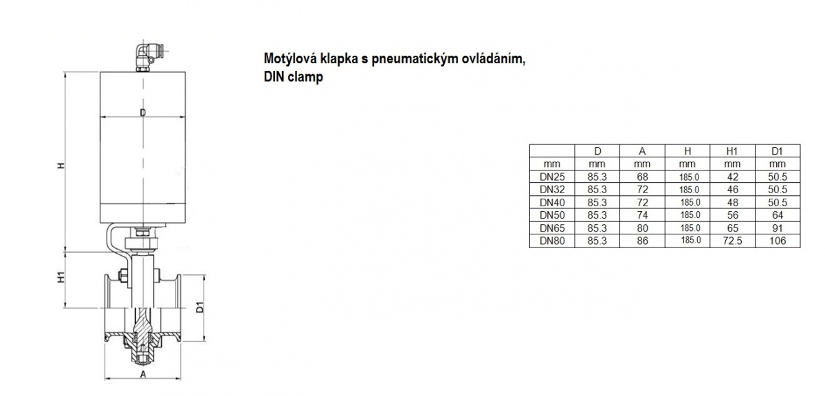 Rozměry pneumatické motýlové klapky