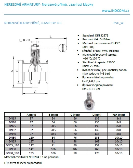 Nerezové klapky přímé, clamp typ C-C