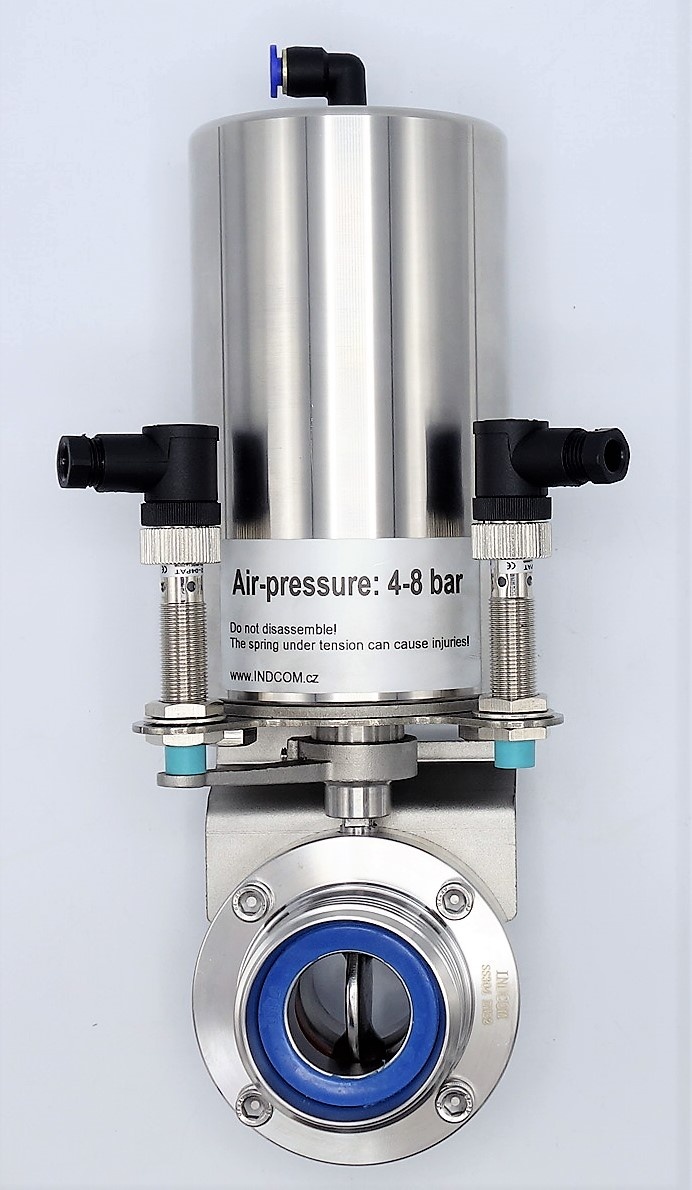 Pro ovládání pneumatického pohonu je třeba pohon doplnit pilotním (elektromagne­tickým) ventilem pro ovládáním přívodu tlakového vzduchu. Dále je možní klapku doplnit indukčními snímači pro signalizaci skutečné polohy klapky (otevřeno/uzavřeno). Tato konfigurace Vám umožní ovládat klapku přes řídící systém se zpětnou vazbou v jaké poloze se klapka nachází.