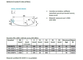 Klenutá dna (dýnka) z nerezového oceli 1.4301 (AISI 304).