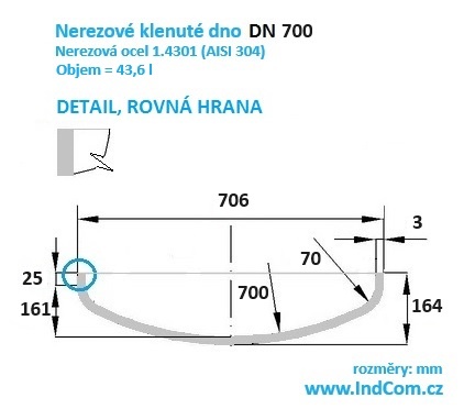 Klenutá dna (dýnka) z nerezového oceli 1.4301 (AISI 304).