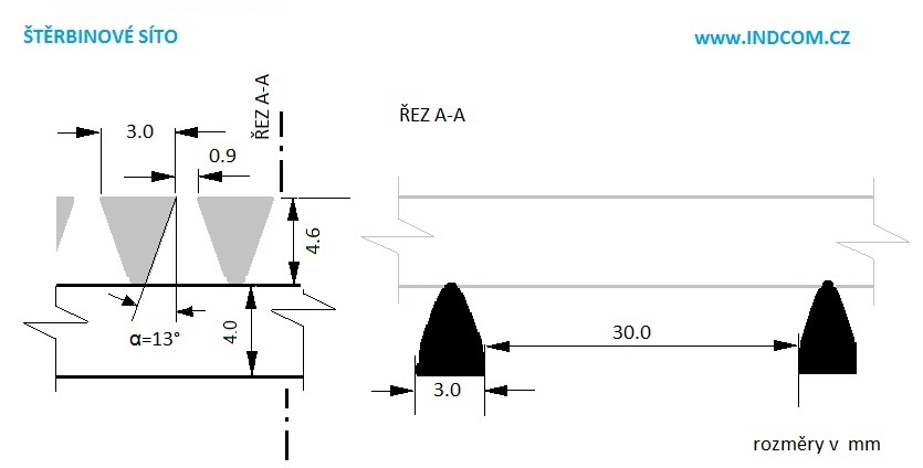 Pracovní plocha nabízeného síta je hladce opracovaná a má v řezu trojúhelníkový profil.
